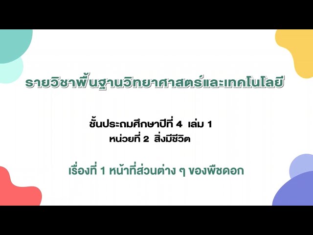 เรื่องที่ 1 หน้าที่ส่วนต่าง ๆ ของพืชดอก (วัดหลวงวิทยา)