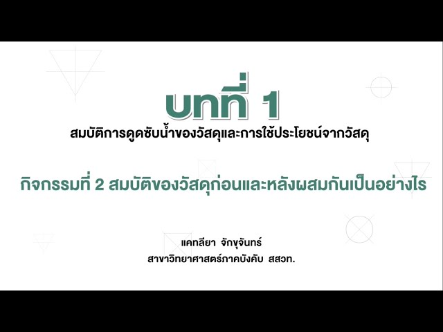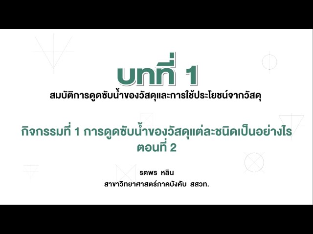 กิจกรรมที่ 1 การดูดซับน้ำของวัสดุแต่ละชนิดเป็นอย่างไร ตอนที่ 1 (วัดหลวงวิทยา)