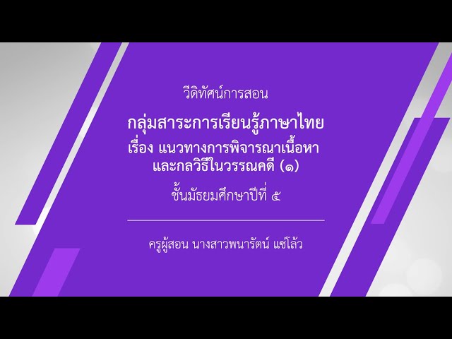 เรื่อง แนวทางการพิจราณาเนื้อหาและกลวิธีในวรรณคดี EP.01 (ศรียาภัย)