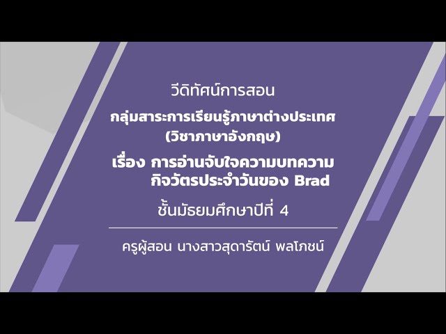 เรื่อง การอ่านจับใจความบทความกิจวัตรประจำวันของ Brad (วัดหลวงวิทยา)
