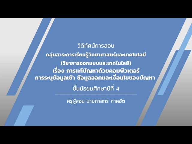 เรื่องการแก้ปัญหาด้วยคอมพิวเตอร์ การระบุข้อมูลเข้า ข้อมูลออกและเงื่อนไขของปัญหา (วัดหลวงวิทยา)