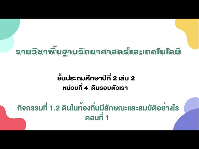 กิจกรรมที่ 1.2 ดินในท้องถิ่นมีลักษณะและสมบัติอย่างไร ตอนที่ 1