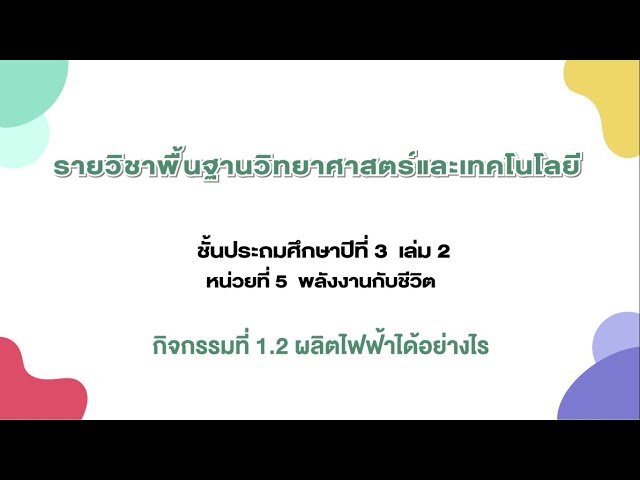 กิจกรรมที่ 1.2 ผลิตไฟฟ้าได้อย่างไร