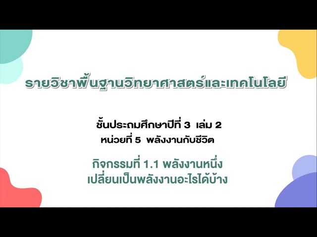 กิจกรรมที่ 1.1 พลังงานหนึ่งเปลี่ยนเป็นพลังงานอะไรได้บ้าง (วัดชำผักแพว)