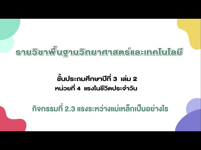 กิจกรรมที่ 2.3 แรงระหว่างแม่เหล็กเป็นอย่างไร (วัดชำผักแพว)
