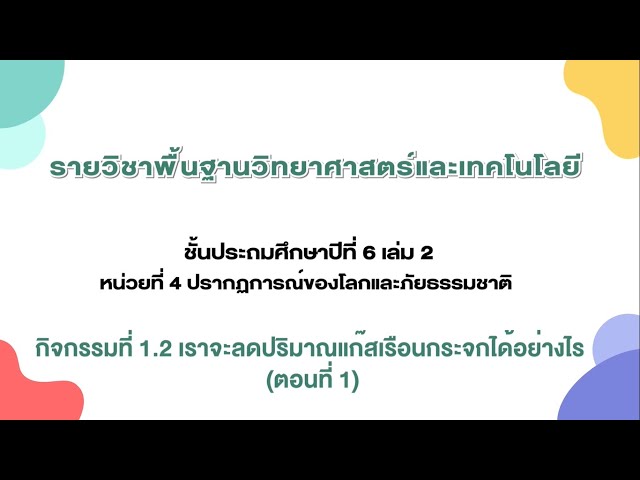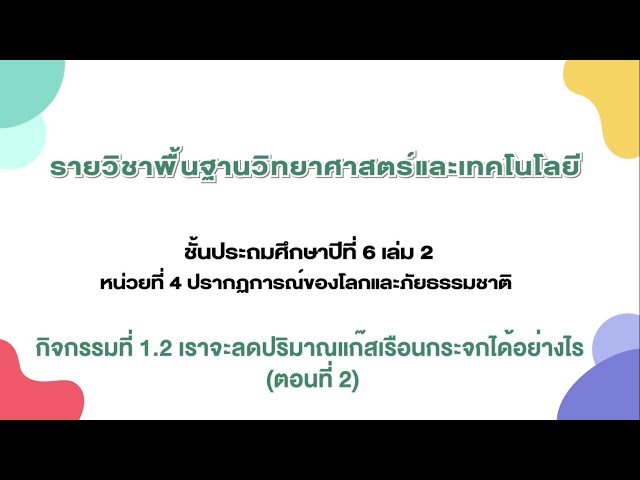 กิจกรรมที่ 1.2 เราจะลดปริมาณแก๊สเรือนกระจกได้อย่างไร (ตอนที่ 2)