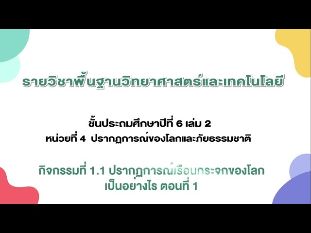 กิจกรรมที่ 1.1 ปรากฏการณ์เรือนกระจกของโลกเป็นอย่างไร (ตอนที่ 1) (วัดชำผักแพว)