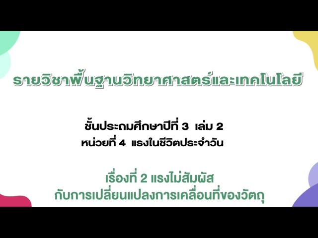 เรื่องที่ 2 แรงไม่สัมผัสกับการเปลี่ยนแปลงการเคลื่อนที่ของวัตถุ (วัดหนองพันท้าว(พรประชาวิทยาคาร))