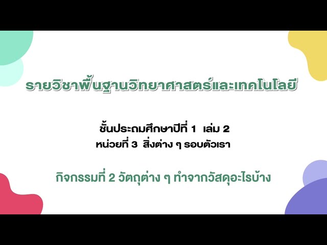 กิจกรรมที่ 2 วัตถุต่าง ๆ ทำจากวัสดุอะไรบ้าง