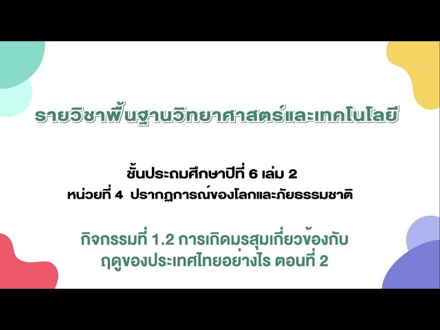 กิจกรรมที่ 1.2 การเกิดมรสุมเกี่ยวข้องกับฤดูของประเทศไทยอย่างไร (ตอนที่ 2)