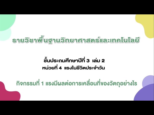 กิจกรรมที่ 1 แรงมีผลต่อการเคลื่อนที่ของวัตถุอย่างไร (วัดหลวงวิทยา)