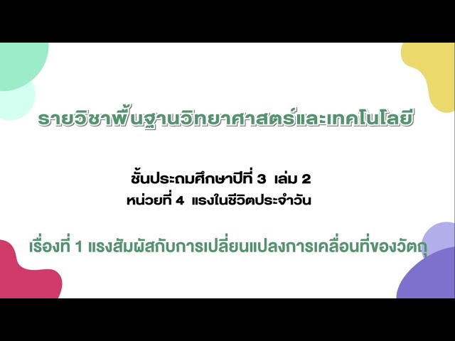 เรื่องที่ 1 แรงสัมผัสกับการเปลี่ยนแปลงการเคลื่อนที่ของวัตถุ