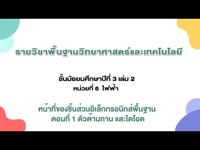 หน้าที่ของชิ้นส่วนอิเล็กทรอนิกส์พื้นฐาน ตอนที่ 1 ตัวต้านทาน และไดโอด