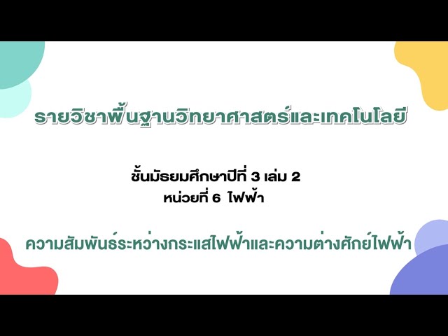 ความสัมพันธ์ระหว่างกระแสไฟฟ้าและความต่างศักย์ไฟฟ้า (บ้านหนองหว้า(ประชาสรรค์))