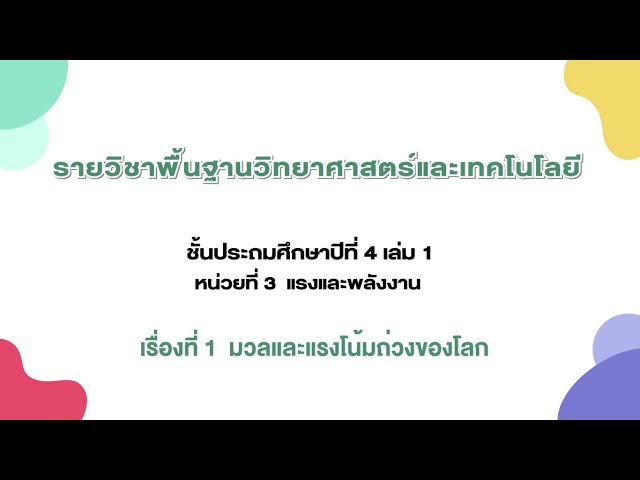 เรื่องที่ 1 มวลและแรงโน้มถ่วงของโลก (วัดหลวงวิทยา)