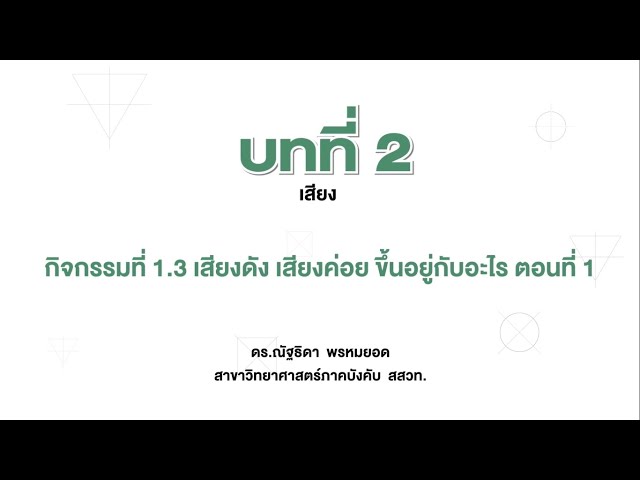 กิจกรรมที่ 1.3 เสียงดัง เสียงค่อย ขึ้นอยู่กับอะไร ตอนที่ 1 (วัดชำผักแพว)