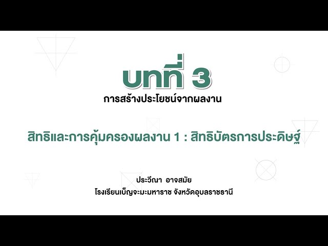 สิทธิและการคุ้มครองผลงาน 1 : สิทธิบัตรการประดิษฐ์ (วัดหลวงวิทยา)
