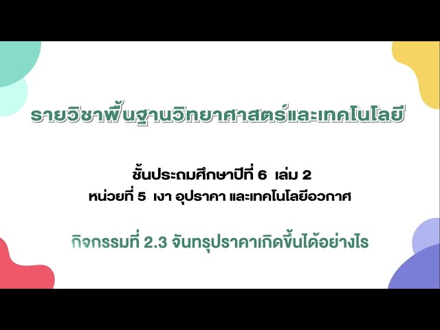 กิจกรรมที่ 2.3 จันทรุปราคาเกิดขึ้นได้อย่างไร (วัดแสงสรรค์)