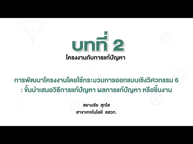 การพัฒนาโครงงานโดยใช้กระบวนการออกแบบเชิงวิศวกรรม 6 : ขั้นนำเสนอวิธีการแก้ปัญหา ผลการแก้ปัญหา หรือชิ้นงาน (ช้างมิ่งพิทยานุกูล)