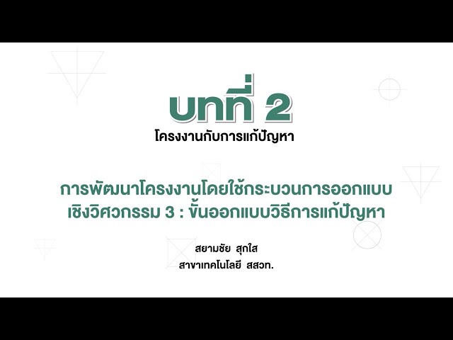 การพัฒนาโครงงานโดยใช้กระบวนการออกแบบเชิงวิศวกรรม 3 : ขั้นออกแบบวิธีการแก้ปัญหา (ช้างมิ่งพิทยานุกูล)