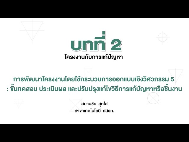 การพัฒนาโครงงานโดยใช้กระบวนการออกแบบเชิงวิศวกรรม 5 : ขั้นทดสอบ ประเมินผล และปรับปรุงแก้ไขวิธีการแก้ปัญหาหรือชิ้นงาน