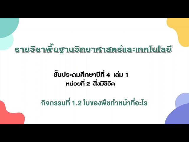 กิจกรรมที่ 1.2 ใบของพืชทำหน้าที่อะไร (วัดหลวงวิทยา)